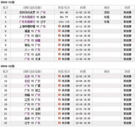 01-04:广东vs天津;01-07:广东vs浙江;01-09:福建vs广东;01-12:广东vs北控;01-14:同曦vs广东;01-16:广东vs四川;10:01-18:广东vs辽宁。